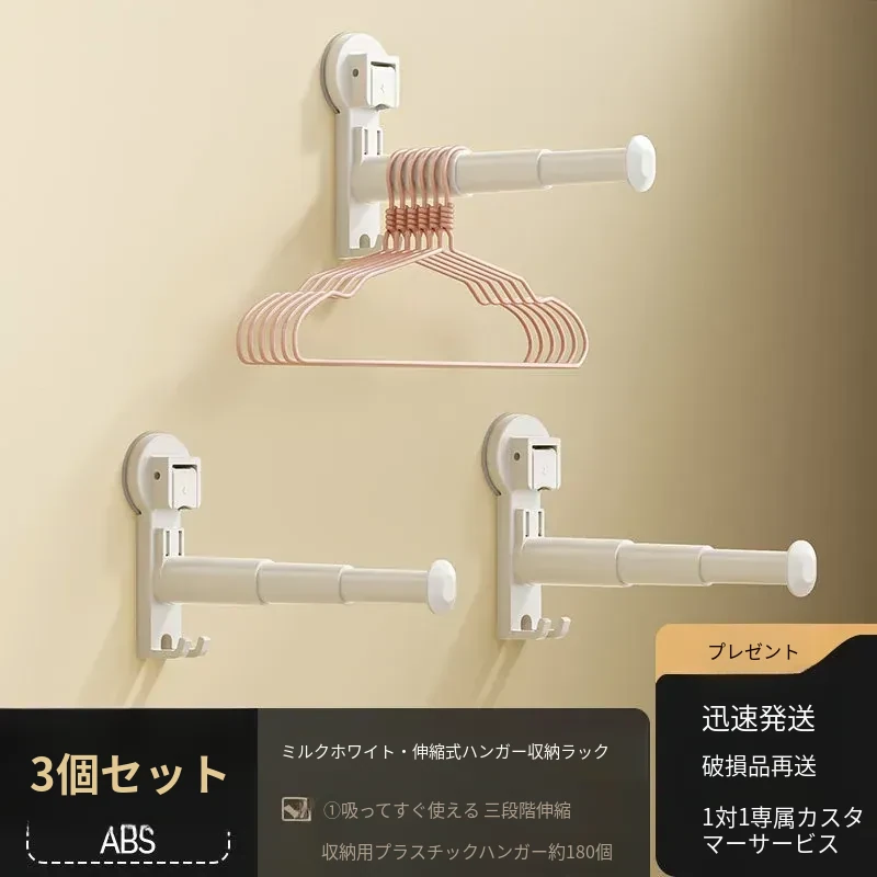 クリームホワイト3個セット⭐アップグレード伸縮【長期間吸着/耐荷重約30kg/99%の壁面に適用】