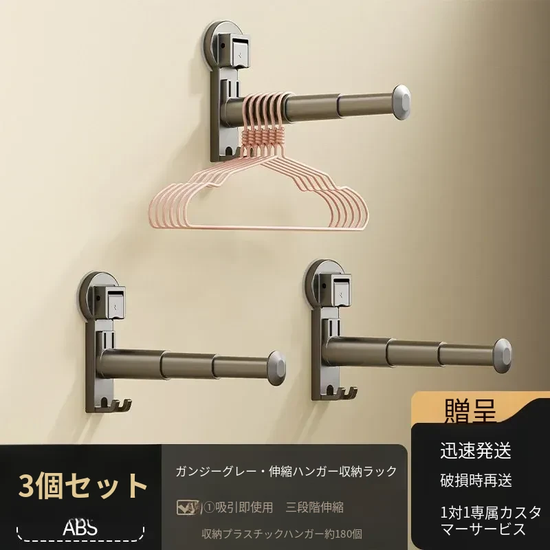ガンメタル3個セット⭐アップグレード伸縮【長期間吸着/耐荷重約30kg/99%の壁面に適用】