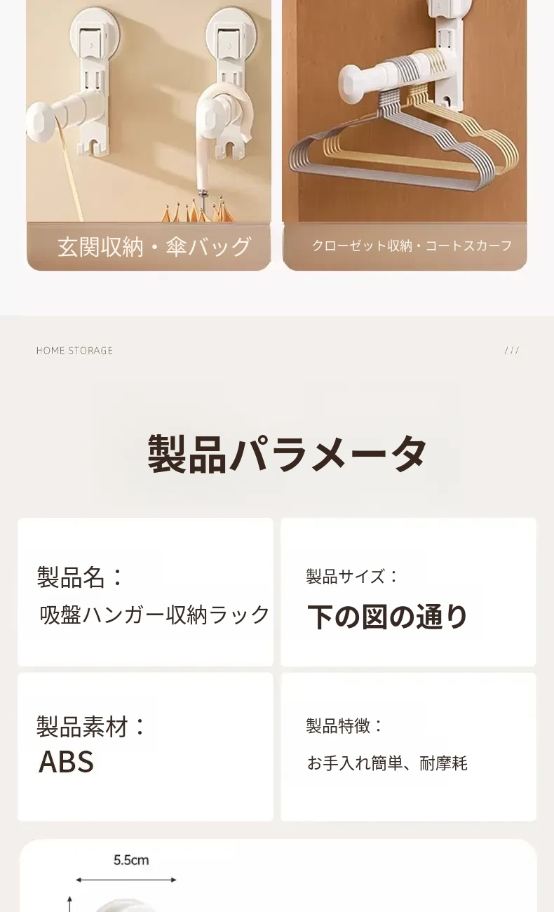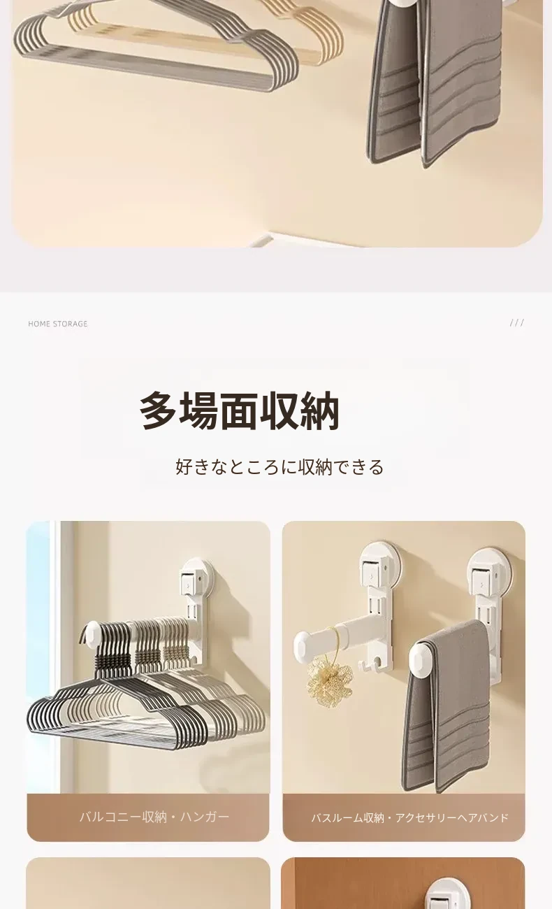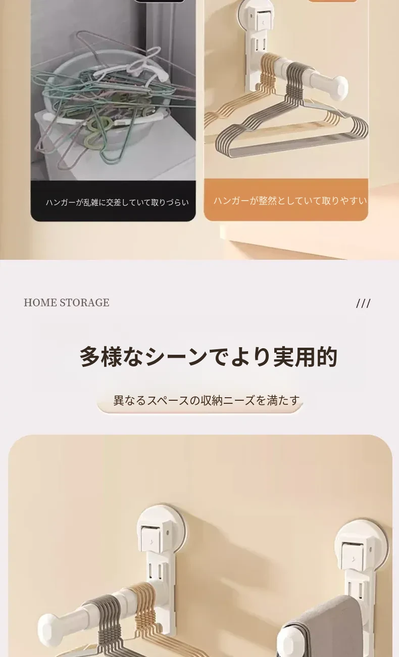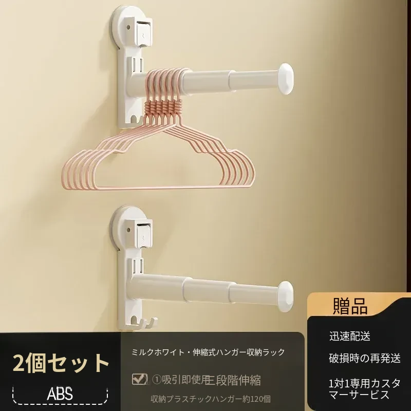クリームホワイト2個セット✨アップグレード伸縮【長期間吸着/耐荷重約30kg/99%の壁面に適用】