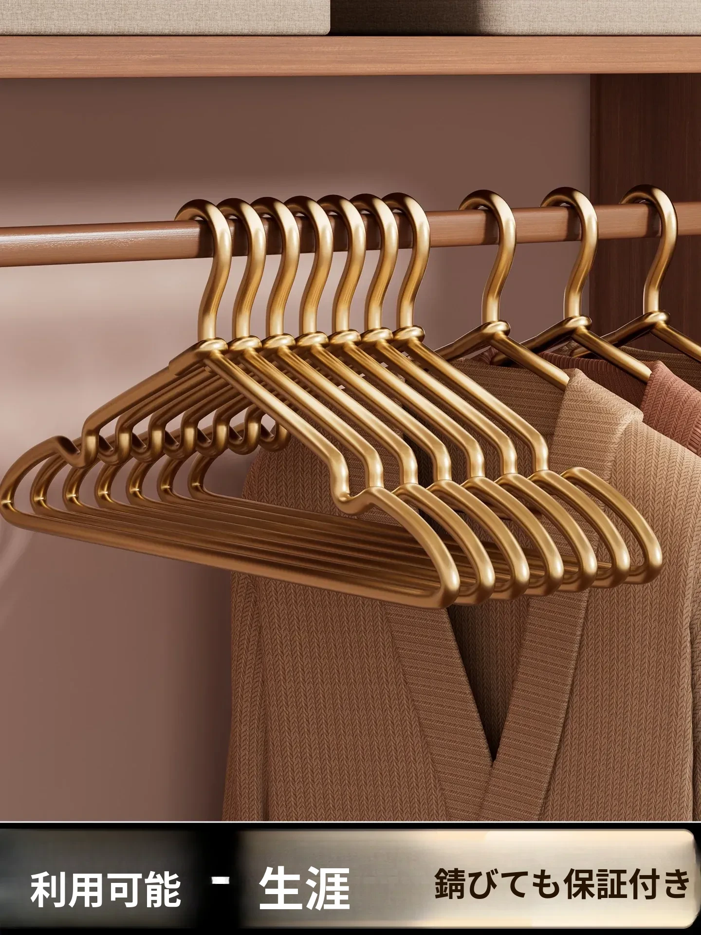 滑らず安心!アルミ合金製ハンガー - 家庭用・無痕で滑り止め付き、厚手・頑丈なデザイン。学生寮や日常使いに最適な衣類干しハンガー!