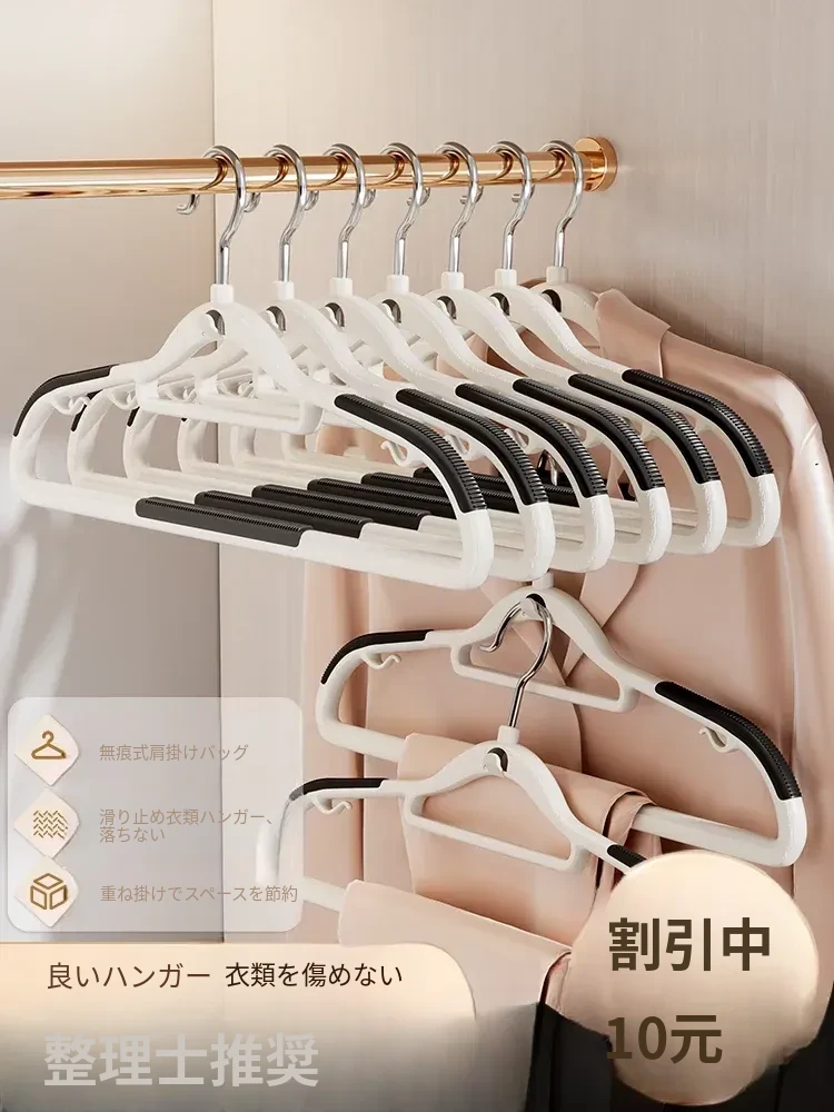 家庭用無痕厚型衣架 - 肩のラインを守る滑り止め設計!しっかりとした強度で、大切な衣類をしっかり支え、型崩れを防ぎます。おしゃれで実用的な衣類収納に最適!