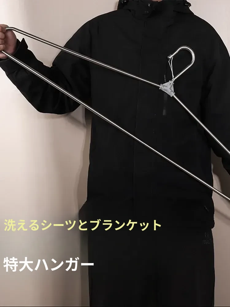 風に強いステンレス製の超大型コートハンガー - 布団、シーツ、カバー、タオル、毛布がしっかり干せる!長くて太いデザインで、安心の耐久性。お部屋をスッキリ整理整頓!