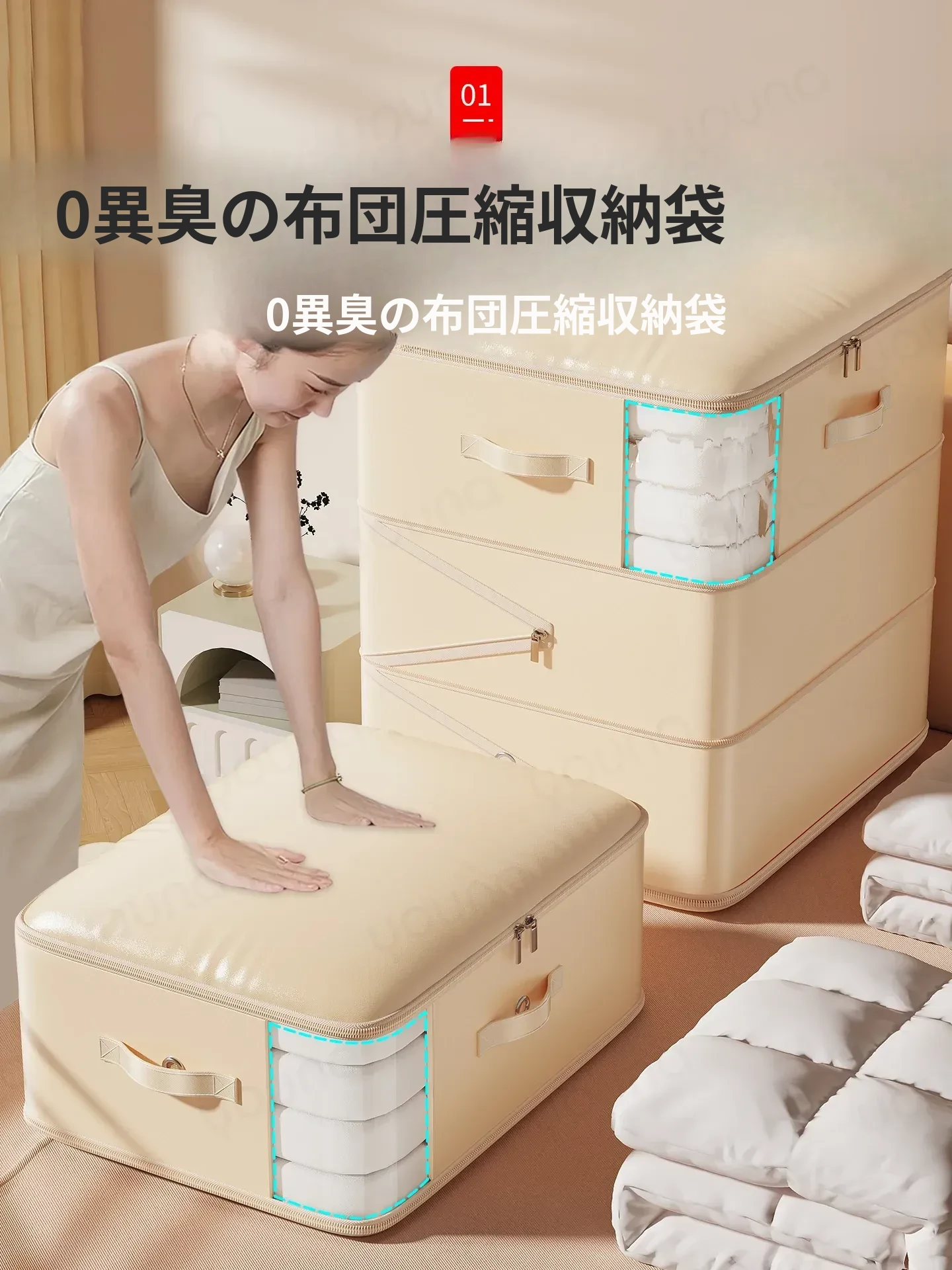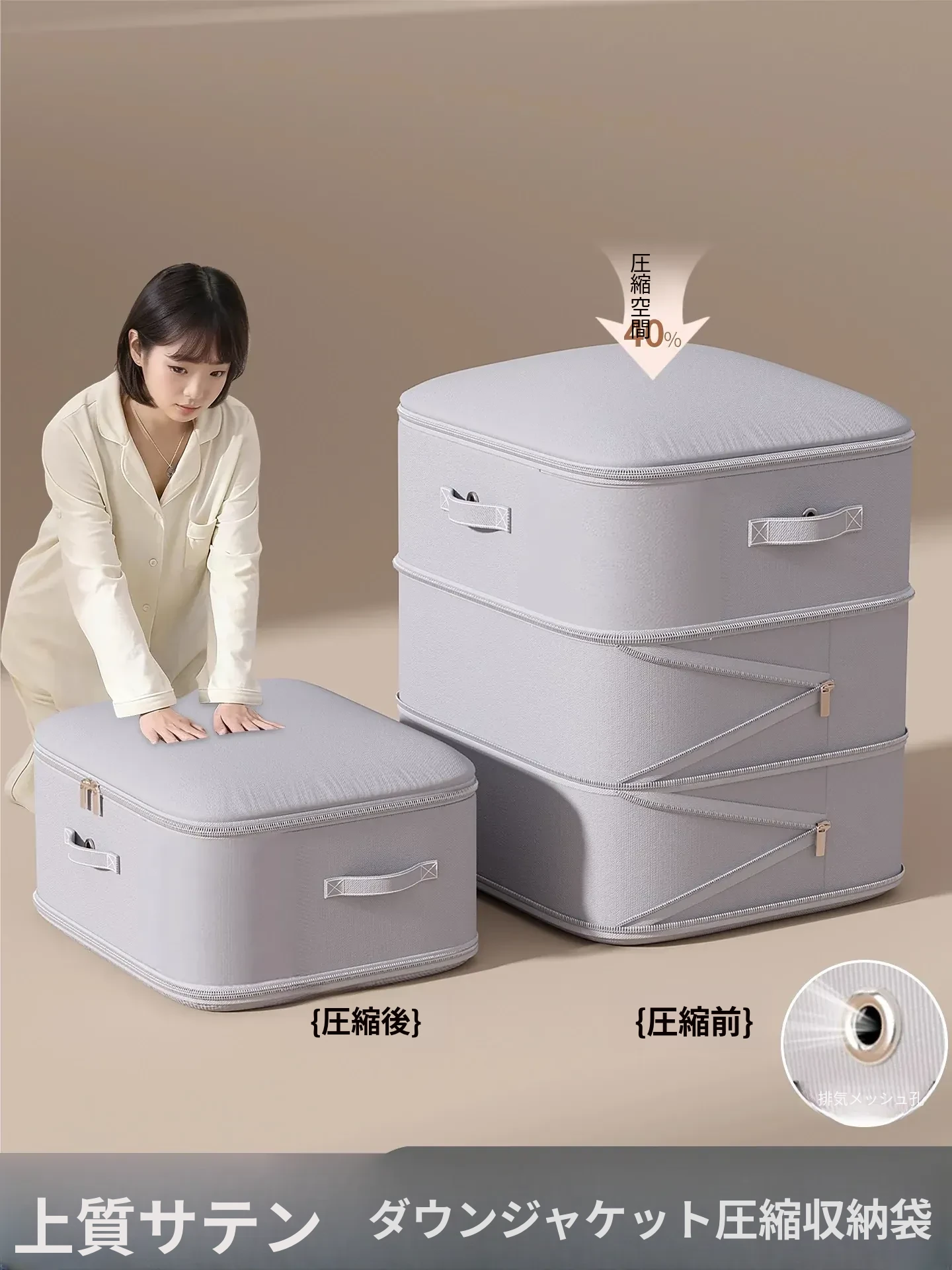 大容量収納袋!羽毛布団やシルク布団に最適な圧縮袋。衣類や毛布もスッキリ整理!家庭での収納に便利なアイテムです。