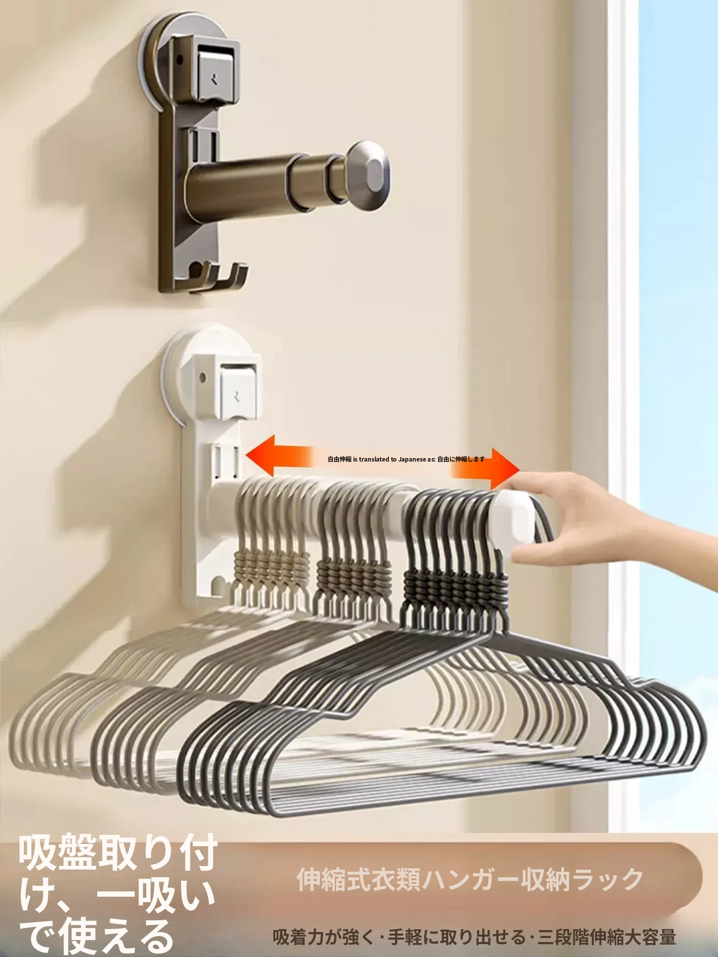 吸盤式伸縮ハンガー - 家庭用バルコニーや室内外で使える、旅行にも便利なノーネイル衣類干し。簡単取り付けで、スペース節約&おしゃれな収納を実現!