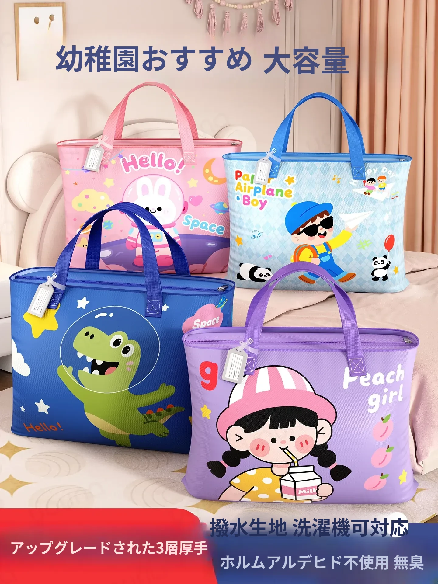 幼稚園用布団収納袋|豪華サテン素材で整理整頓!引越しや旅行にも最適な大容量デザイン|子供用、学生用にぴったりの布団袋!