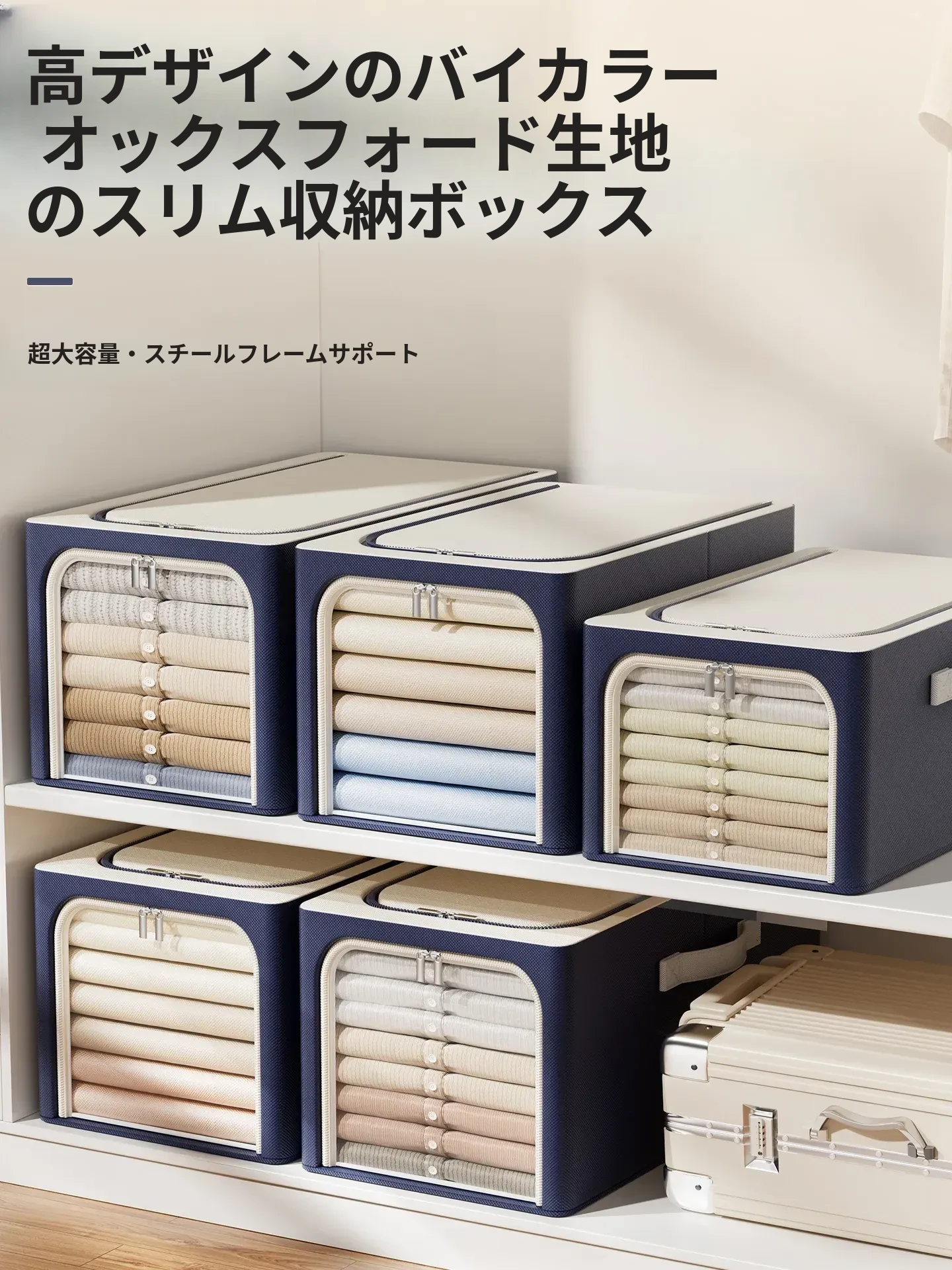 大容量折りたたみ式衣類収納ボックス - 洗練されたデザインで、寝室をスッキリ整理!簡単取り出しで衣類や布団もラクラク収納。面倒な組み立て不要で、どんなインテリアにもぴったりな収納キャビネット!