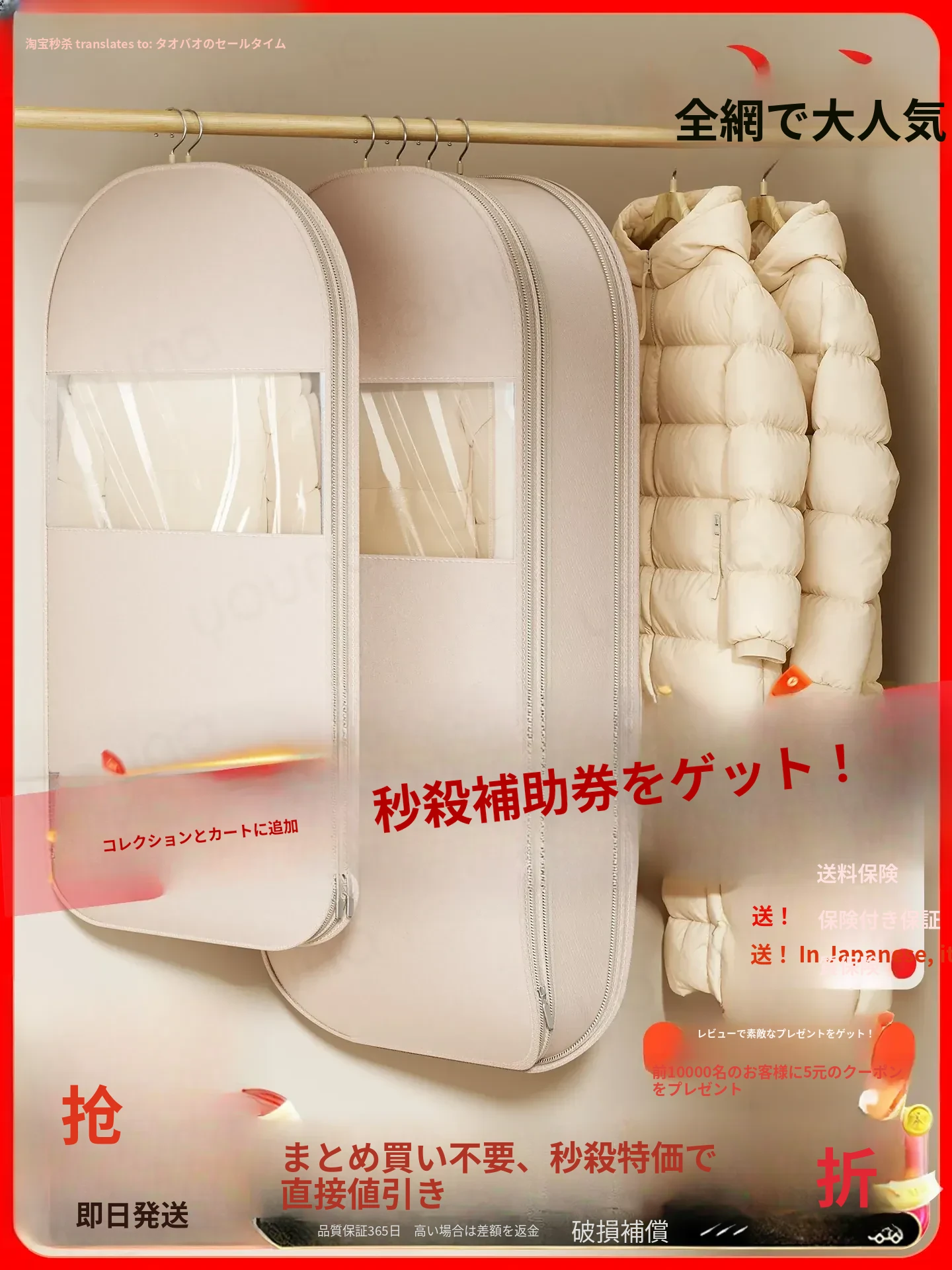 ダウンジャケット収納バッグ 衣類収納に最適!防塵カバー付きロングハンガー用透明圧縮袋 家庭用で衣類をスッキリ整理!