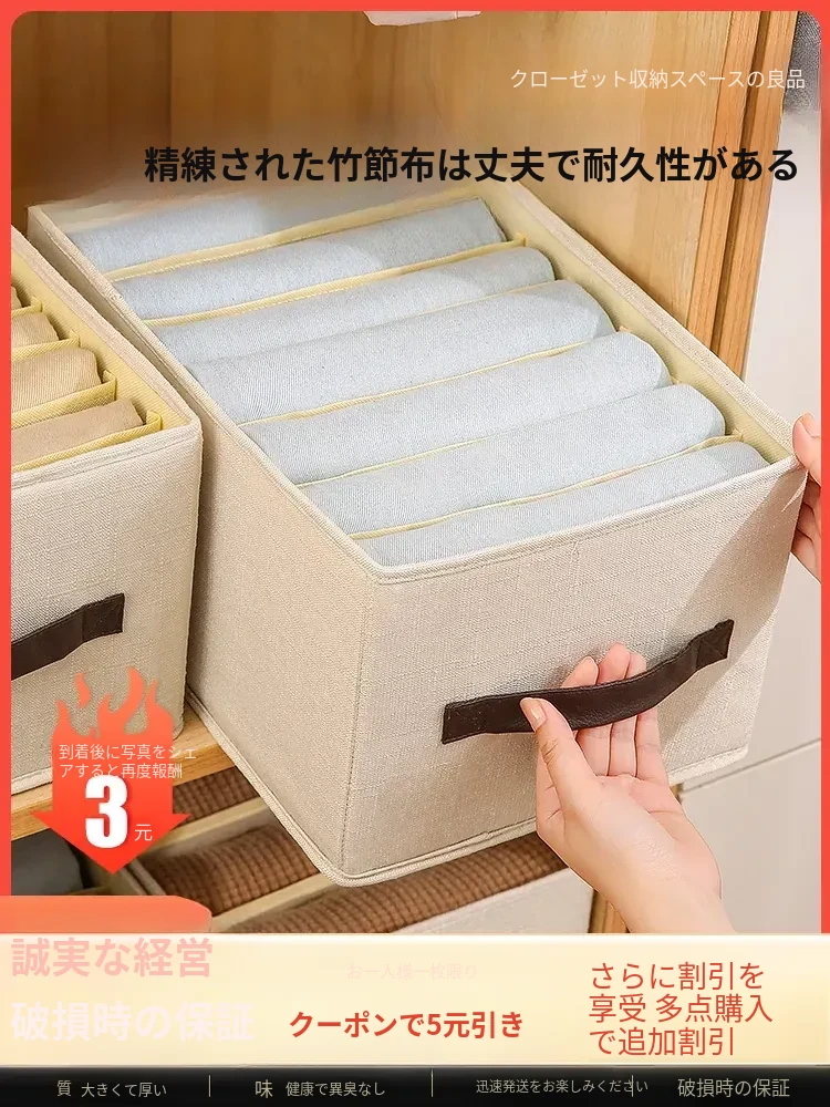 衣類収納に最適!折りたたみ可能なファブリック収納ボックス - 衣服やパンツをすっきり整理!家庭用クローゼットにぴったりな便利アイテム。あなたの生活空間をより快適に!