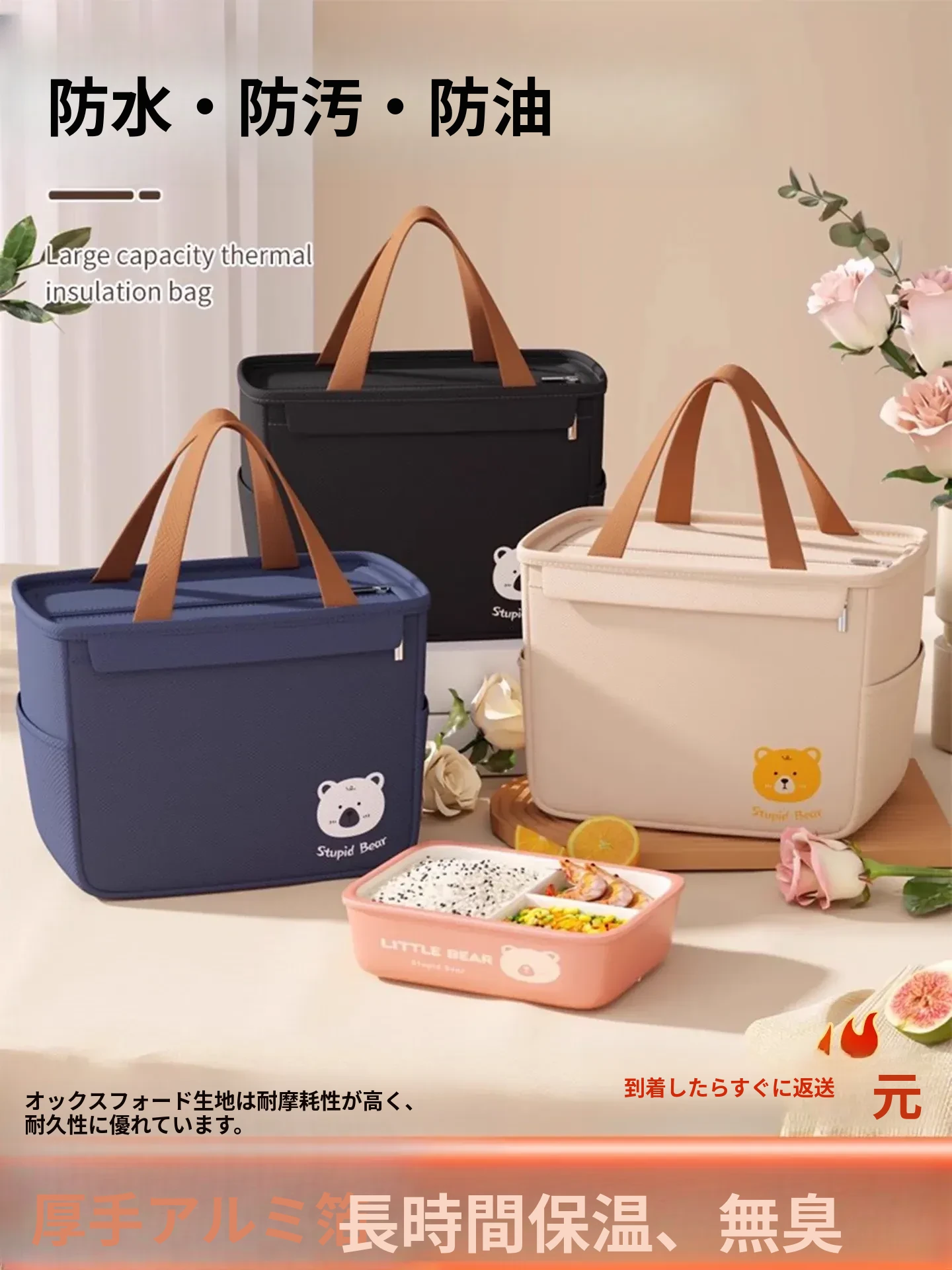 おしゃれで実用的なランチボックスバッグ - 保温性抜群の厚手アルミ箔製!通勤者に最適な手提げ弁当袋。お弁当を美味しく保つ、持ち運び便利なデザイン!