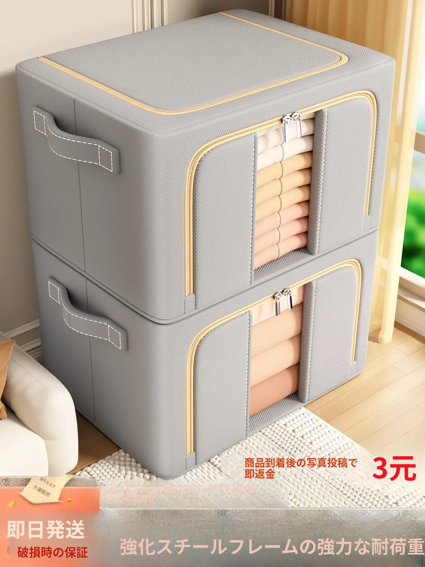 大容量衣服収納ボックス|家族の衣類や布団をすっきり整理!おしゃれな布製で、ダウンジャケットや大切な衣類も安心収納。クローゼットのスペースを有効活用して、生活をもっと快適に!