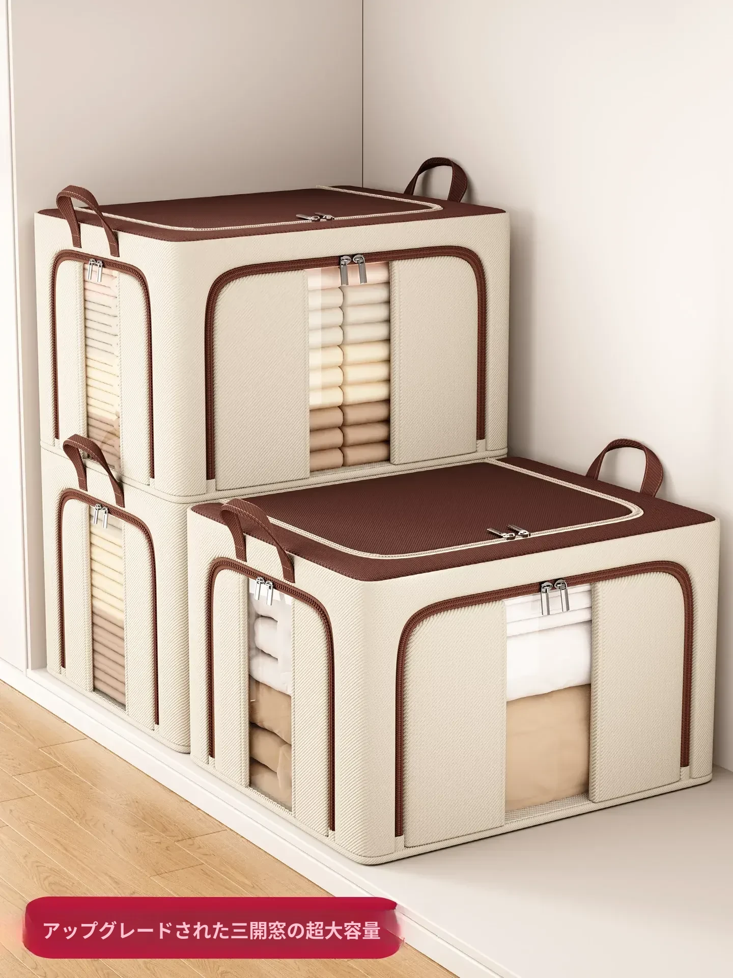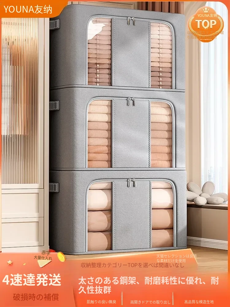 大容量布製衣類整理ボックス|シーズンごとの衣替えに最適!衣類や布団もしっかり収納可能な折りたたみ式|おしゃれで実用的なホーム収納アイテム!